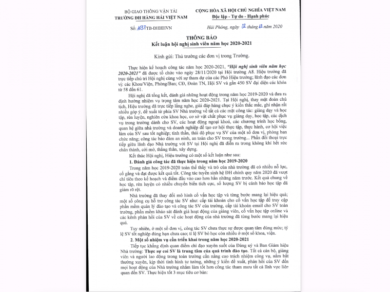Thông báo Về việc tổ chức chương trình tổng kết năm học 2021-2022 và Hội nghị sinh viên năm 2022 |